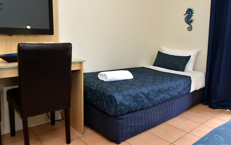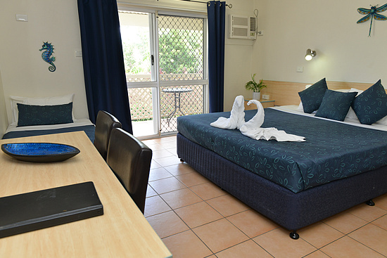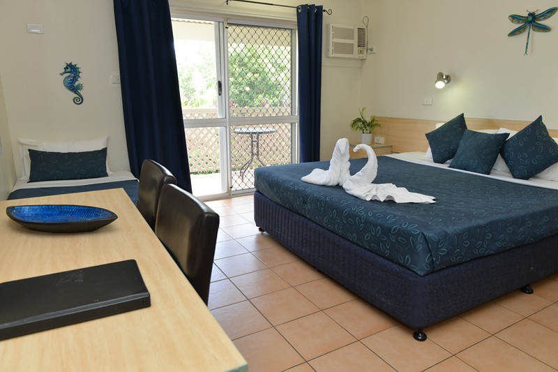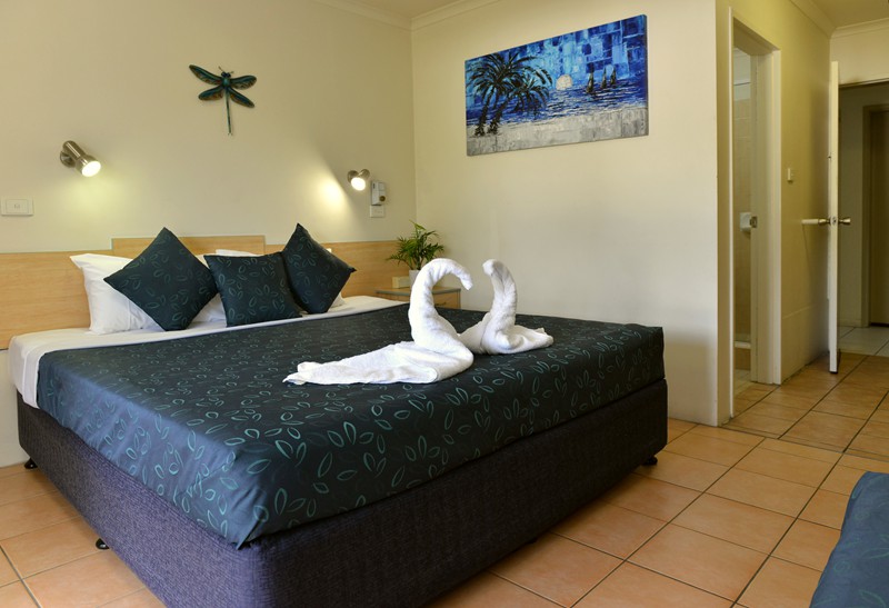 Our Hotel rooms are fully air-conditioned with a soft tropical feel. Each room has tea/coffee making facilities and small bar fridge and microwave. Each room has private patio or balcony and remote control colour TV. The bedding configuration is King Bed, with private ensuite.
